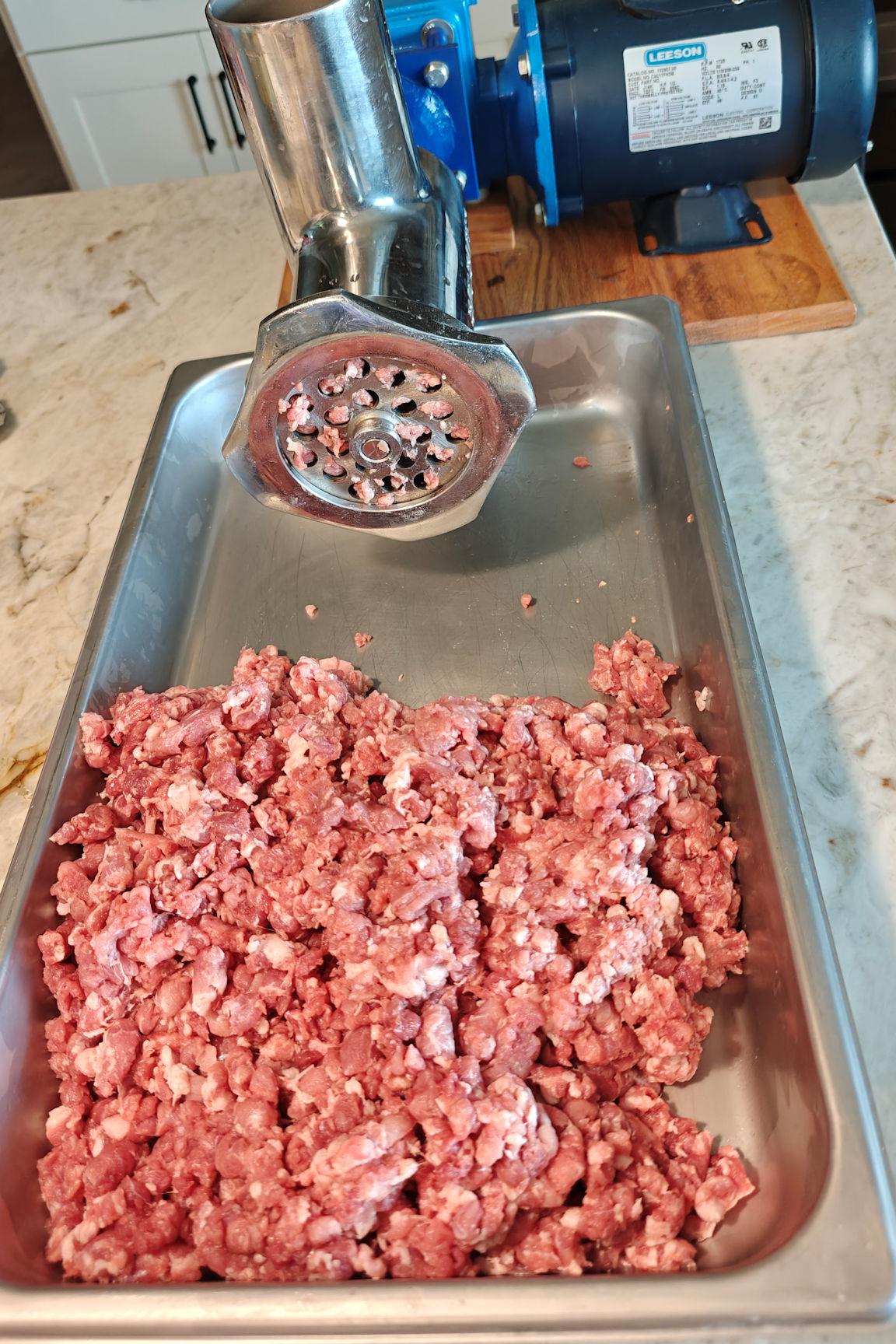 - Grind pork once (large plate).